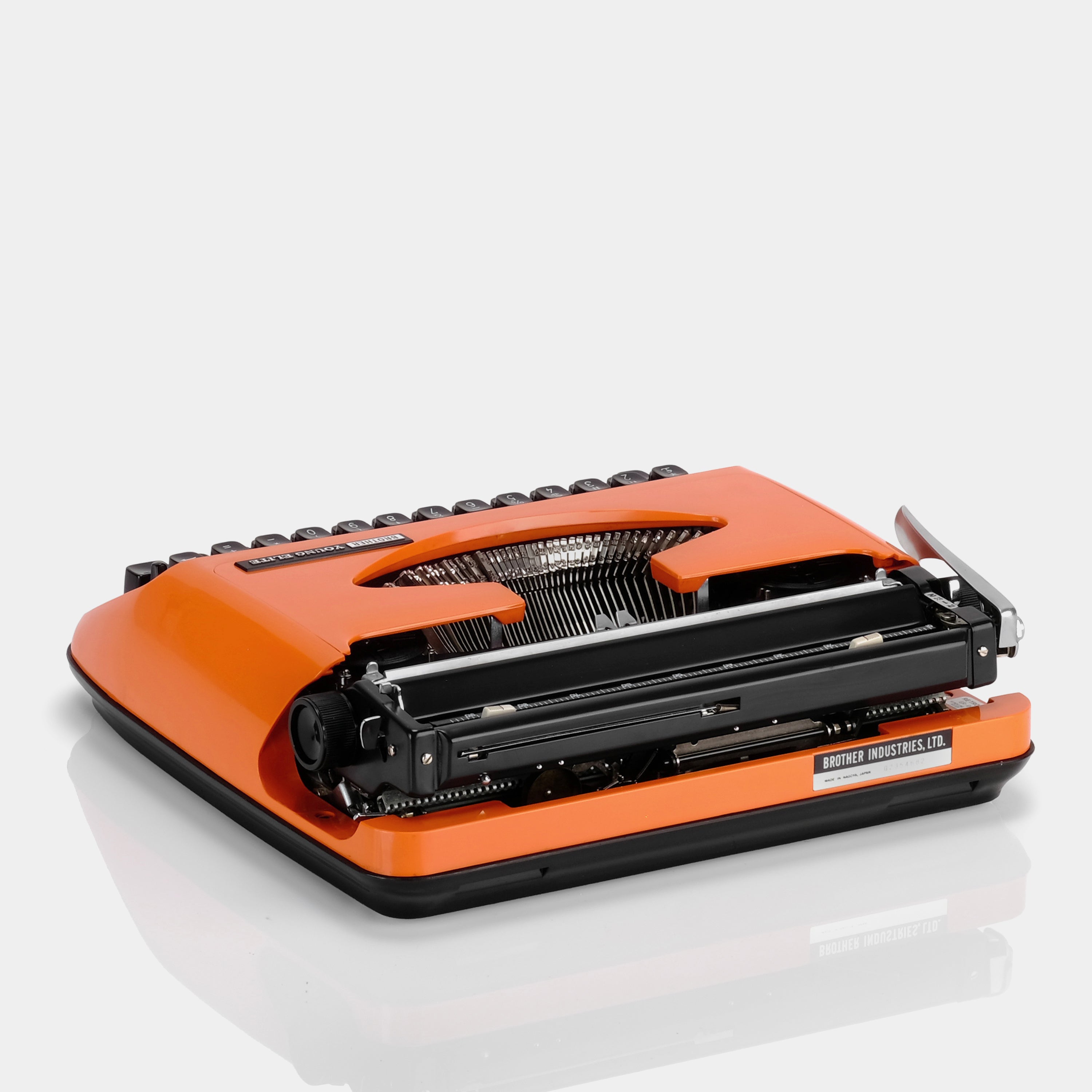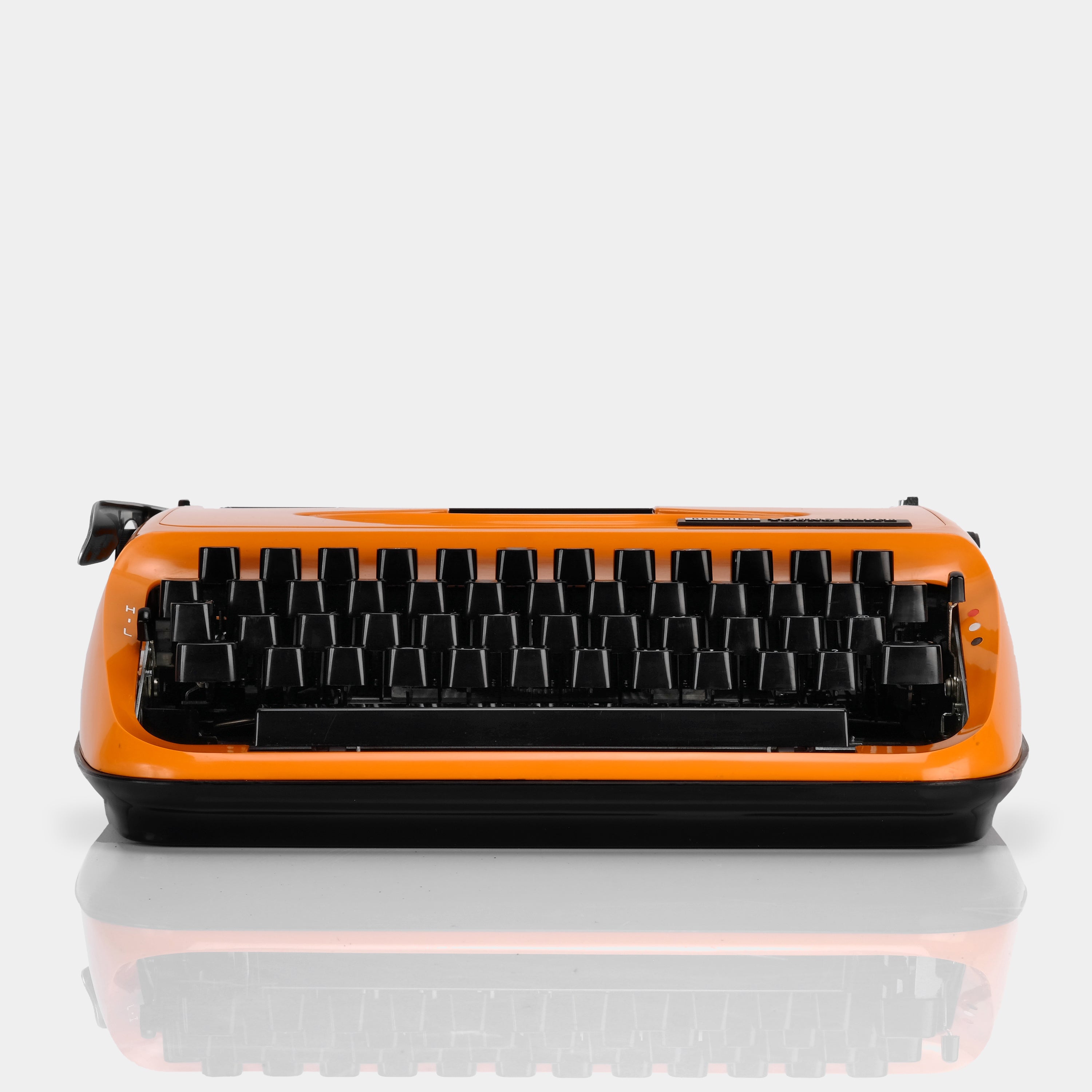 The Brother Young Elite is a manual typewriter from the 1970s, featuring a vibrant orange body and compact form factor. Made in Japan, this model was marketed for students and casual home use, and comes with its original hard plastic carrying case. It has been fully serviced, refurbished and tested — ready for use right out of the box. Expect normal cosmetic wear consistent with age.