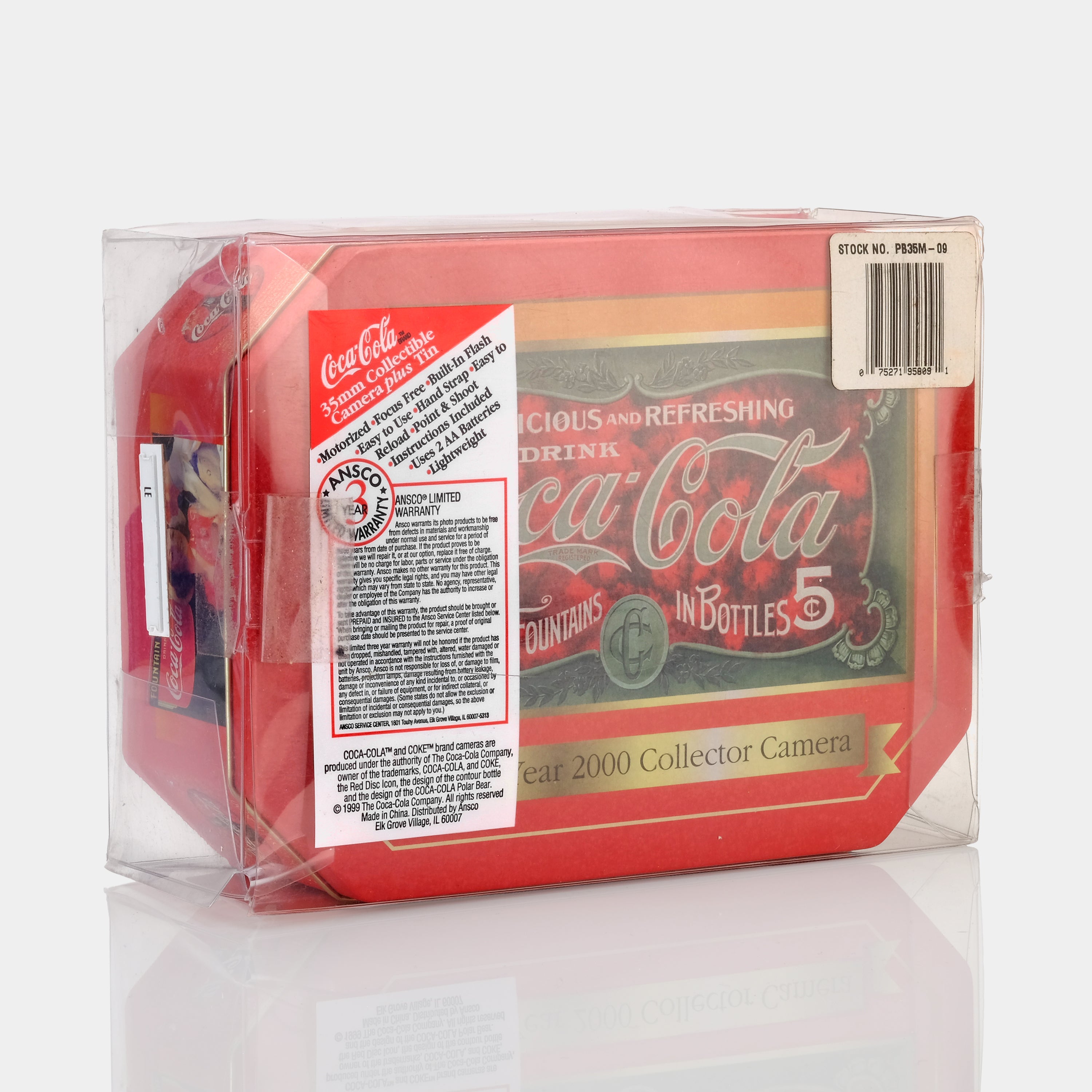 The Coca-Cola 35mm collectible camera is a limited edition camera that features a 3D image of the iconic Coca-Cola polar bear on its body. The camera has a fixed focus lens and a simple point-and-shoot design, making it easy for beginners to use. Though it comes with a roll of Kodak film, it is long expired and unlikely to work properly. The included camera case provides protection while on-the-go, making it a great option for travel and outdoor photography. The Coca-Cola branding and limited edition status make it a sought-after collectible item for fans of the brand and film photography enthusiasts alike.