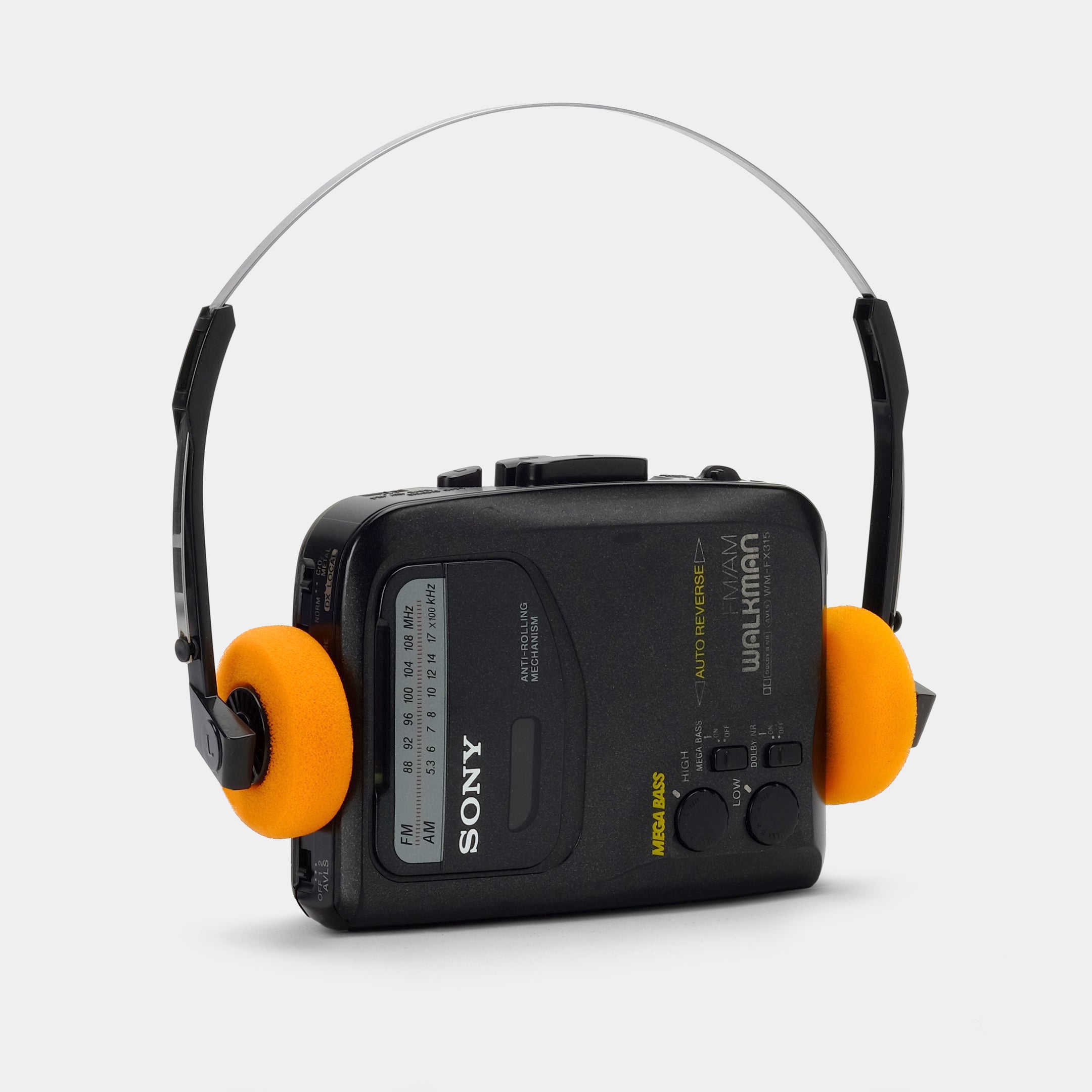 Turn heads with this Sony Walkman WM-F315 AM/FM portable cassette player and retro orange headphones. Take a break from digital media and live in the moment. Fast-forward, flip the tape, watch it spin. Listen to an album all the way through. Slow down and embrace the analog experience that is music on magnetic tape.
