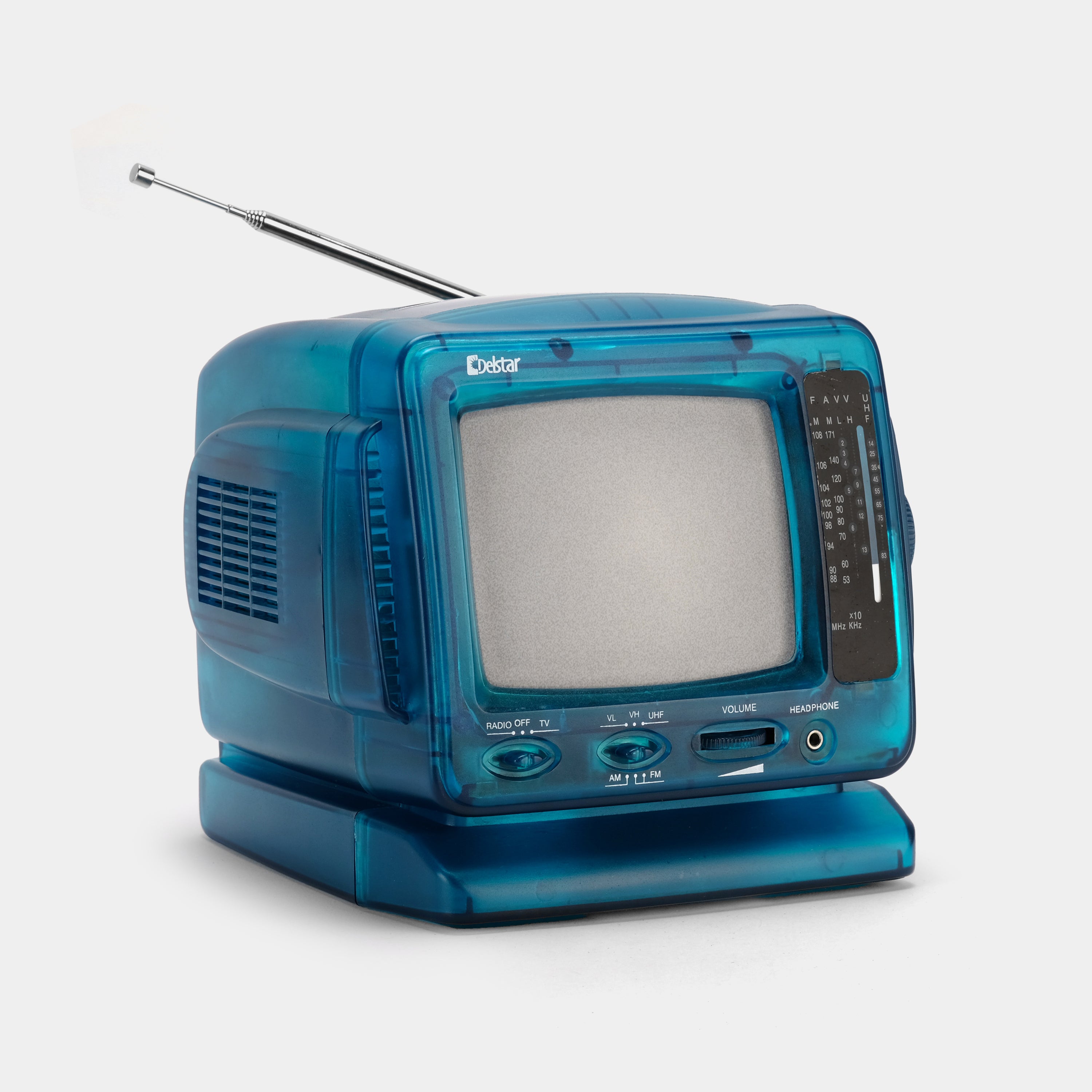 Experience the retro charm of this Delstar black and white portable TV! This iconic piece of technology harks back to a simpler era while delivering classic entertainment in a compact and convenient package. Not just a television, this portable device also boasts a built-in AM/FM radio, allowing you to catch your favorite tunes and radio shows wherever you go. Perfect for vintage electronics collectors or anyone with a fondness for the past, the Delstar DSTV909 is a true conversation piece. Display it proudly in your home or add it to your collection of retro gadgets.