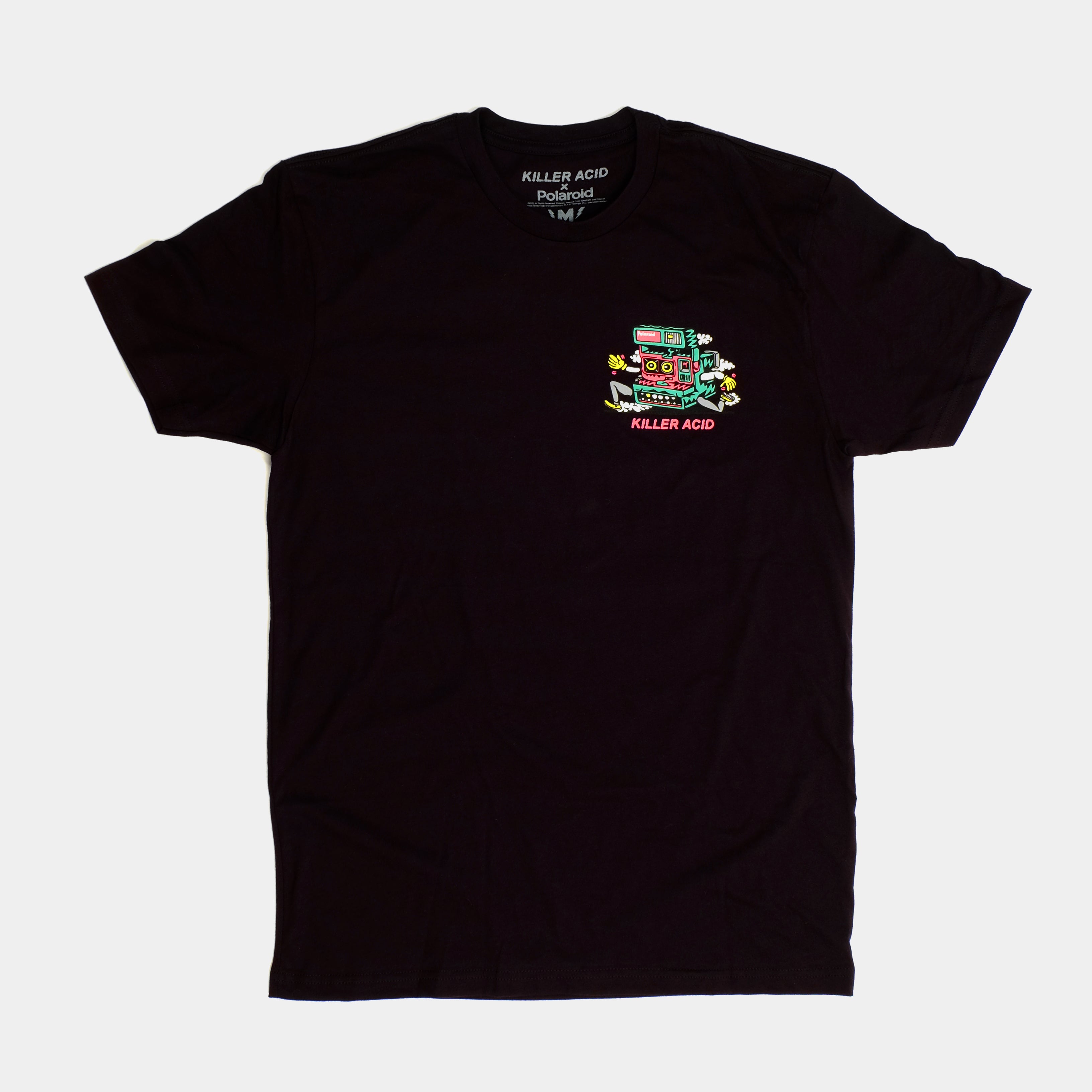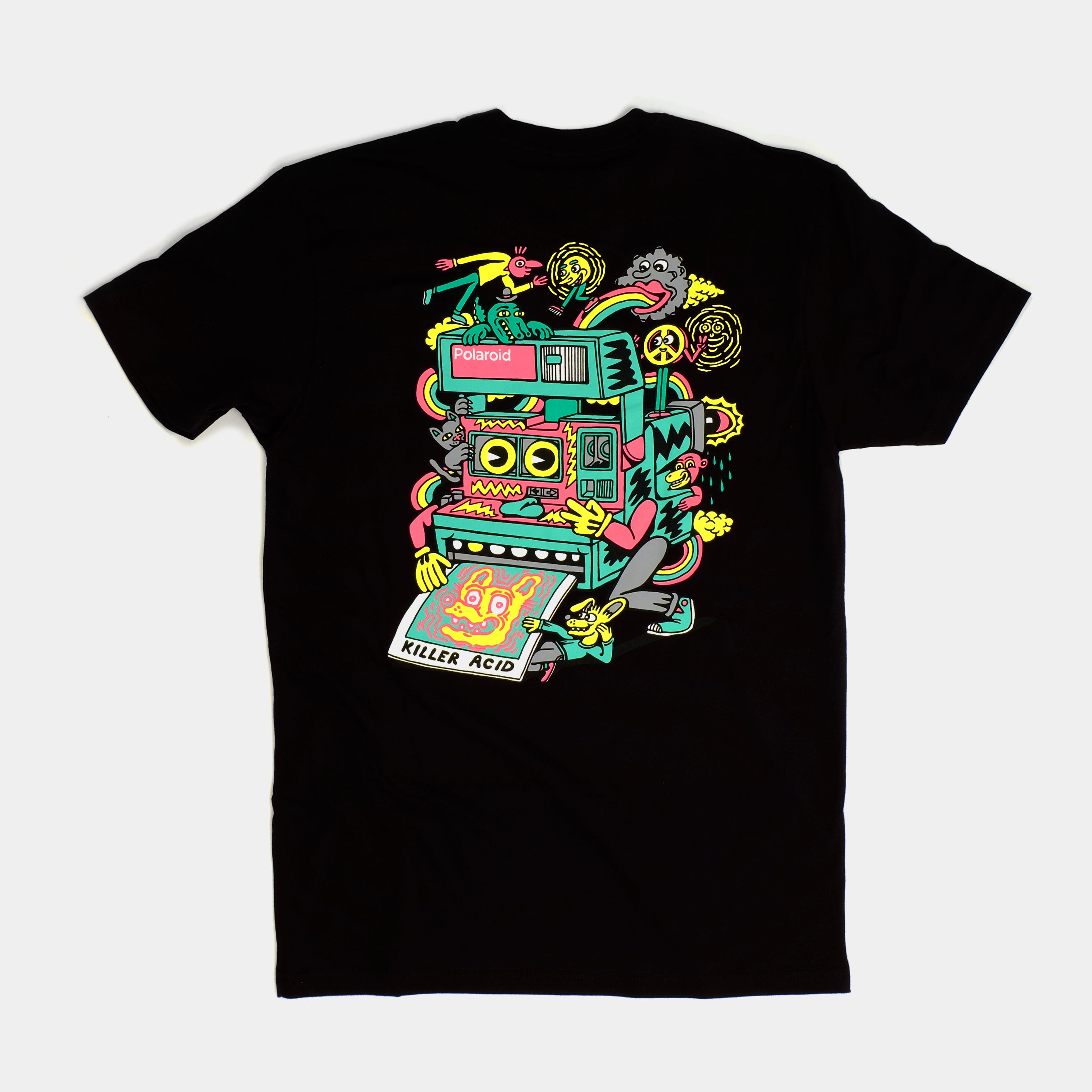 Killer Acid and Polaroid come together in a wild design. Unisex super soft ring spun cotton tee, printed in California. Fits true to size.