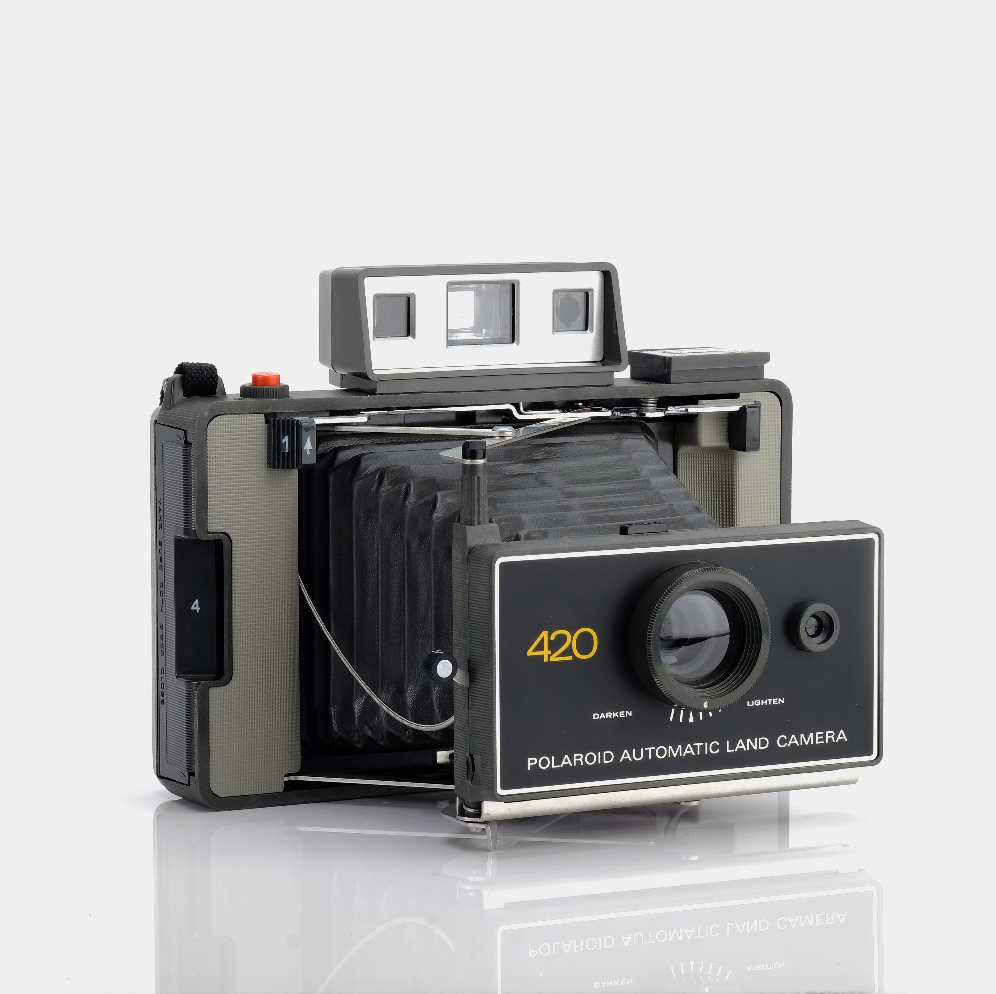 These Automatic-type cameras have a definite 1960's charm, from the foldout bellows, separate viewfinder focusing, and front clamshell covers. They feature an automatic exposure system that makes taking photographs a breeze - just set the film type and adjust the lighten/darken control to taste.