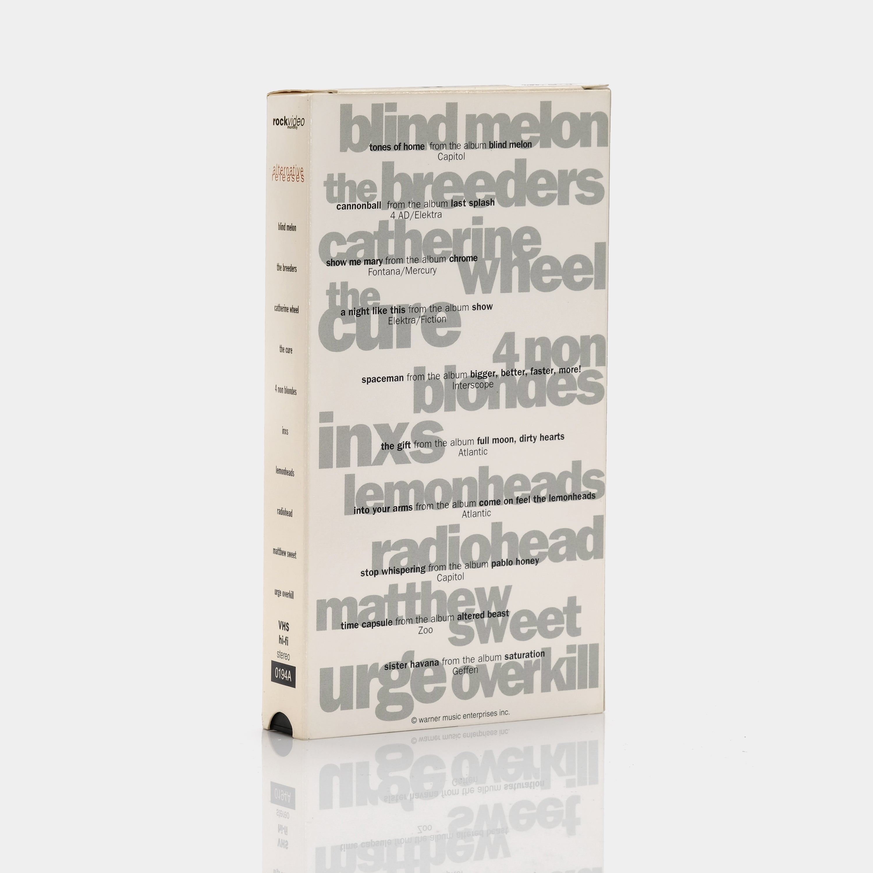 Rock Video Monthly: Alternative Releases (1994) features music videos from popular artists like Blind Melon, The Breeders, Catherine Wheel, The Cure, 4 Non Blondes, INXS, Lemonheads, Radiohead, Matthew Sweet and Urge Overkill. This collection includes tracks such as "Tones of Home," "Cannonball," "Show Me Mary," "A Night Like This," "Spaceman," "The Gift," "Into Your Arms," "Stop Whispering," "Time Capsule" and "Sister Havana." The video offers a mix of alternative, rock and indie hits.